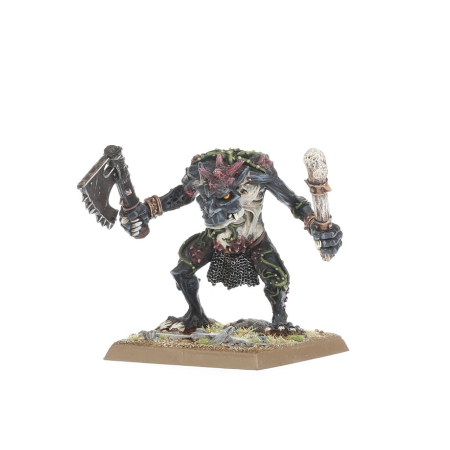 Chaos Trolls are malformed and dim-witted monsters with a taste for human flesh, and when roused, their bestial wrath is terrifying to behold. They roam the northern wastes, preying on isolated villages and travellers.