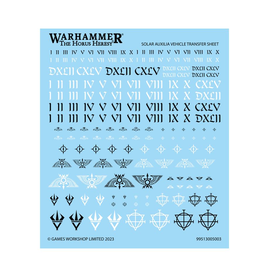 This kit comprises 154 plastic components, as well as a Solar Auxilia Vehicle Transfer Sheet containing 180 high-quality waterslide transfers.