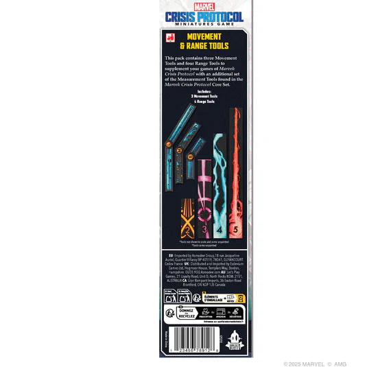 This pack adds an additional 4 Range Tools and 3 Measurement Tools to Marvel: Crisis Protocol.