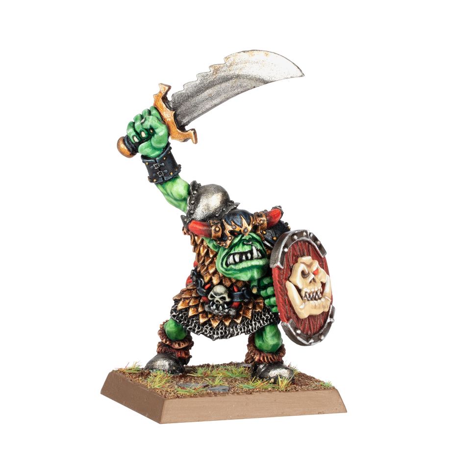 Orc Big 'Uns are the strongest, nastiest of Orcs, and they're led by the biggest and nastiest of the lot. The Boss leads by example, showing the rest of the Boyz how it's done, while the musician and banner bearer drive the rest of the Orcs into a frenzy of destruction.