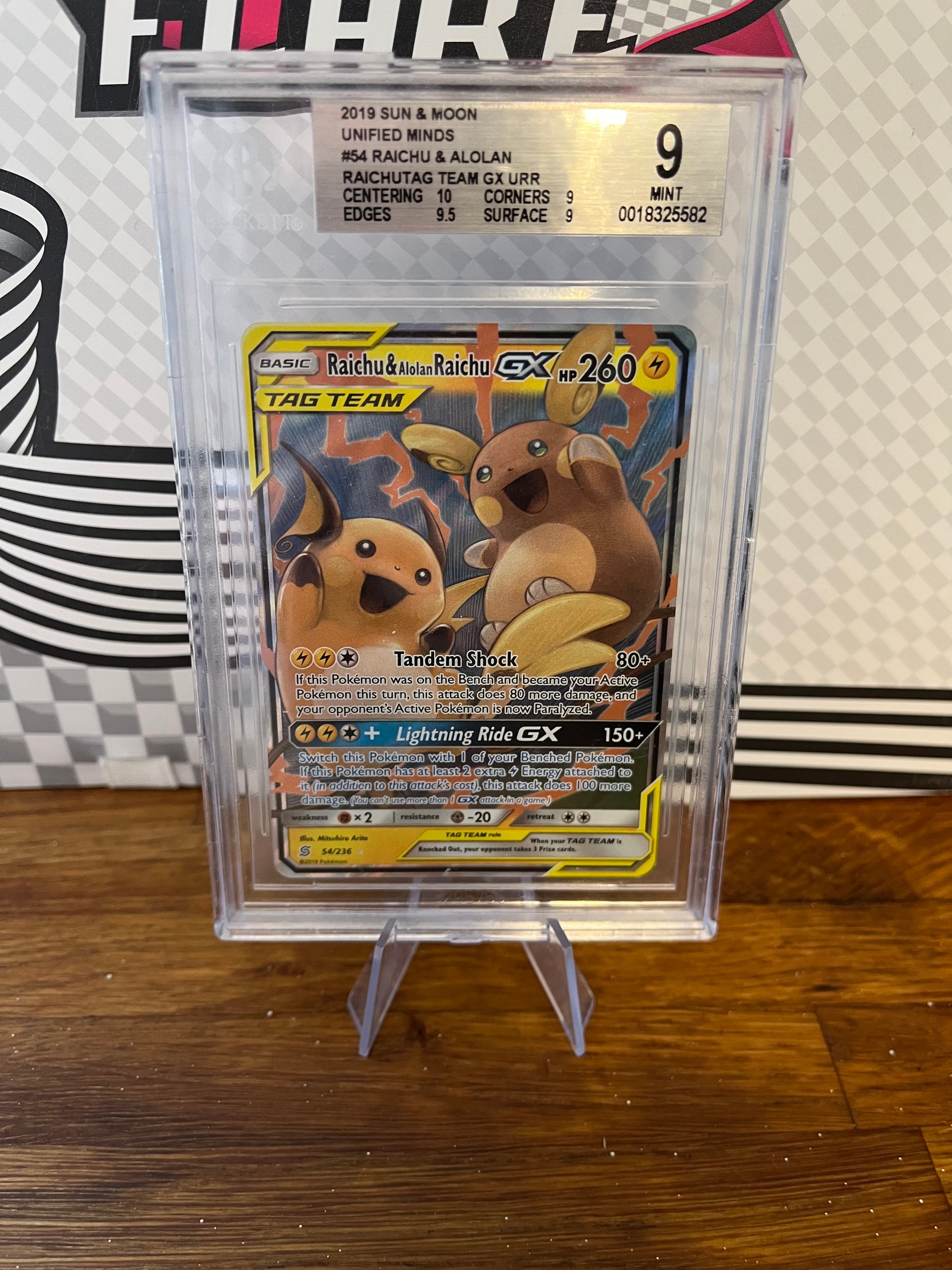 Raichu & Alolan Raichu GX 54/236 Sun & Moon Beckett 9 Graded Pokémon Card