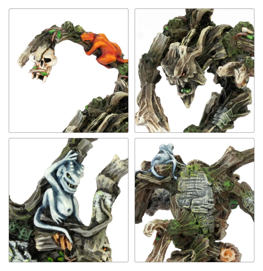 Tree Kin are mighty brutes – animated hulks of deadwood formed into twisted and monstrous parodies of Elves. They fight with gnarled fists that batter armour and pummel flesh to bloody ruin. Fearing neither pain nor death, the Tree Kin are implacable – their bodies no longer have the ability to experience sensation, and the spirits that drive them are long dead.